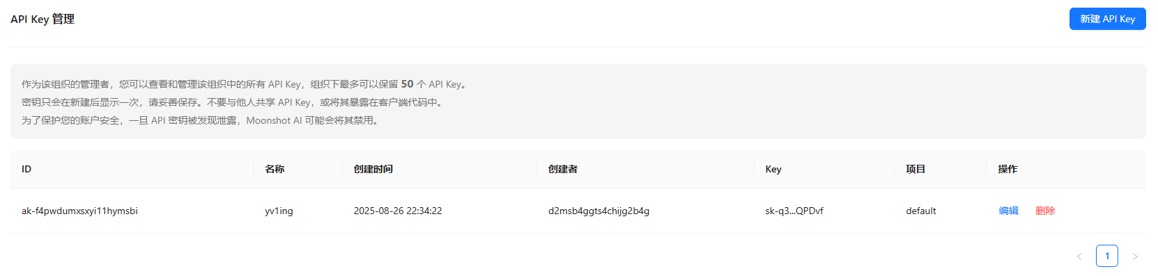 - 注册月之暗面的开放平台账号后,从后台获取 API Key: https://platform.moonshot.cn/console