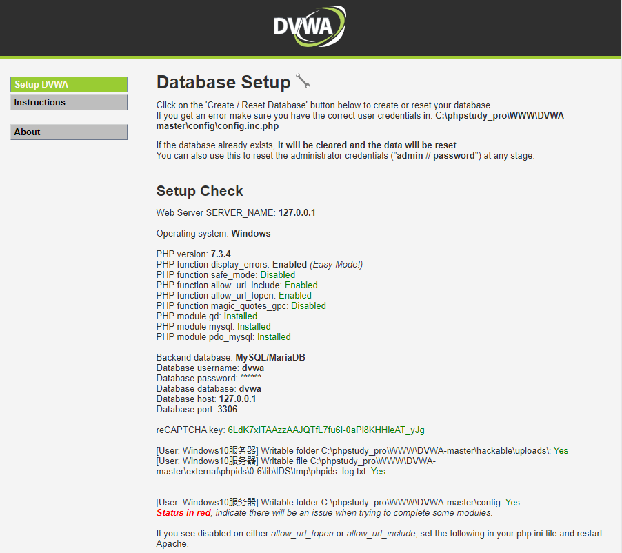 将 $_DVWA[ ‘recaptcha_private_key’ ] 的值设置为:6 LdK 7 xITAzzAAL_uw 9 YXVUOPoIHPZLfw 2 K 1 n 5 NVQ