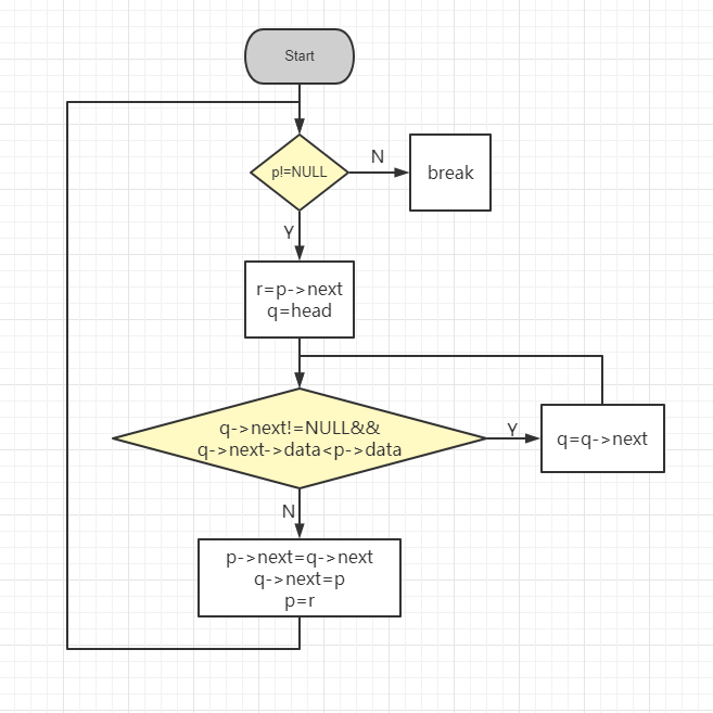 ① 将链表的首元节点(p 指向处)与其后继(r 指向处)断开(p->next=NULL)