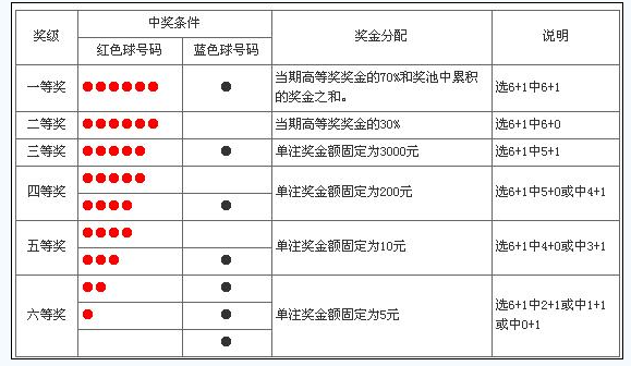 - 投注号码由 6 个红球号码和 1 个蓝球号码组成