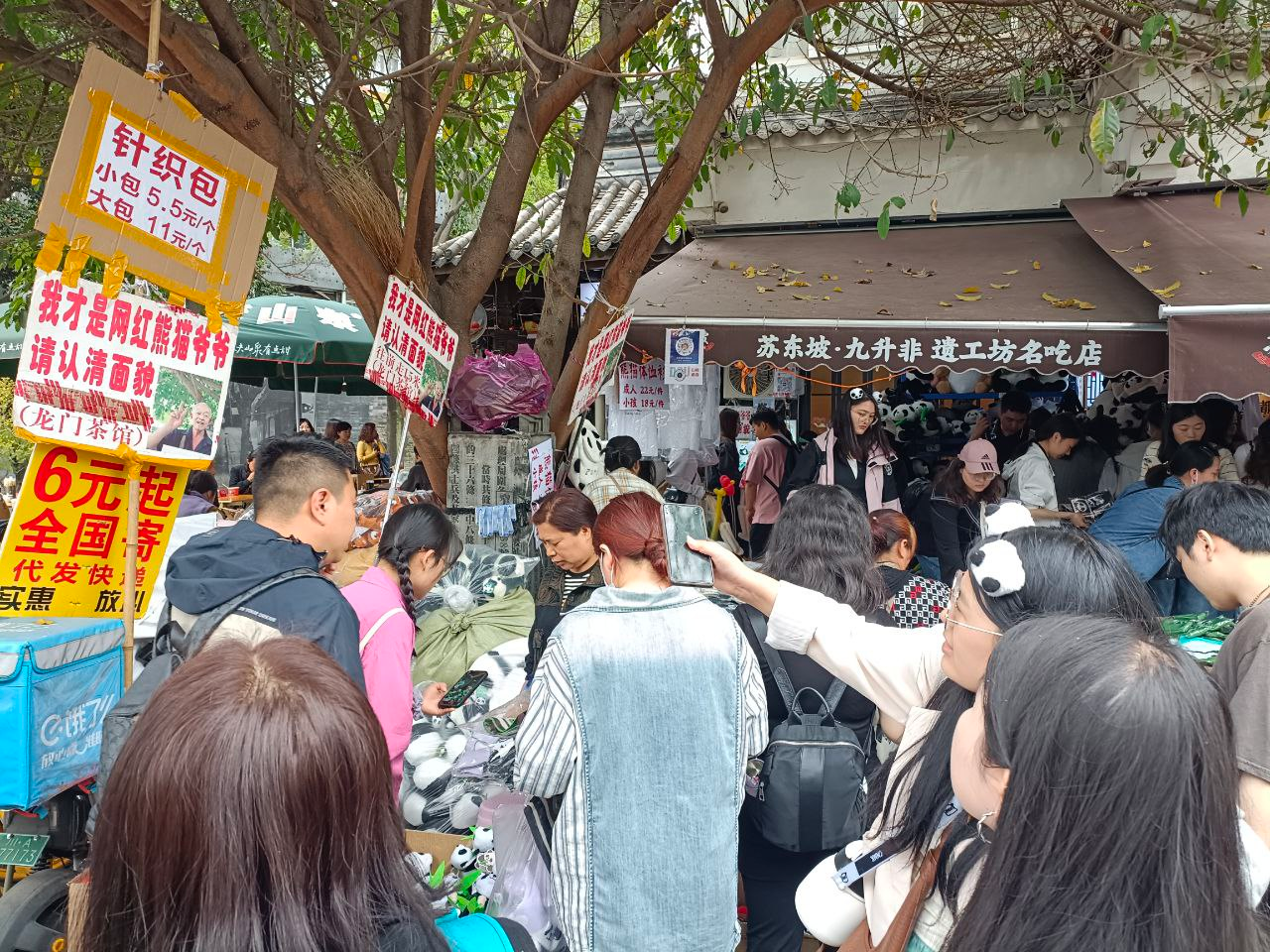 周六早晨,离活动开始还早,打了个车直奔“宽窄巷子”,到了网红熊猫爷爷的摊子打了个卡,该说不说,人是真 tm 多。买了好几个小熊猫玩偶,还有俩布兜子,买完赶紧往回赶,感觉有点晕了,就没敢打车,改坐地铁直奔会场。