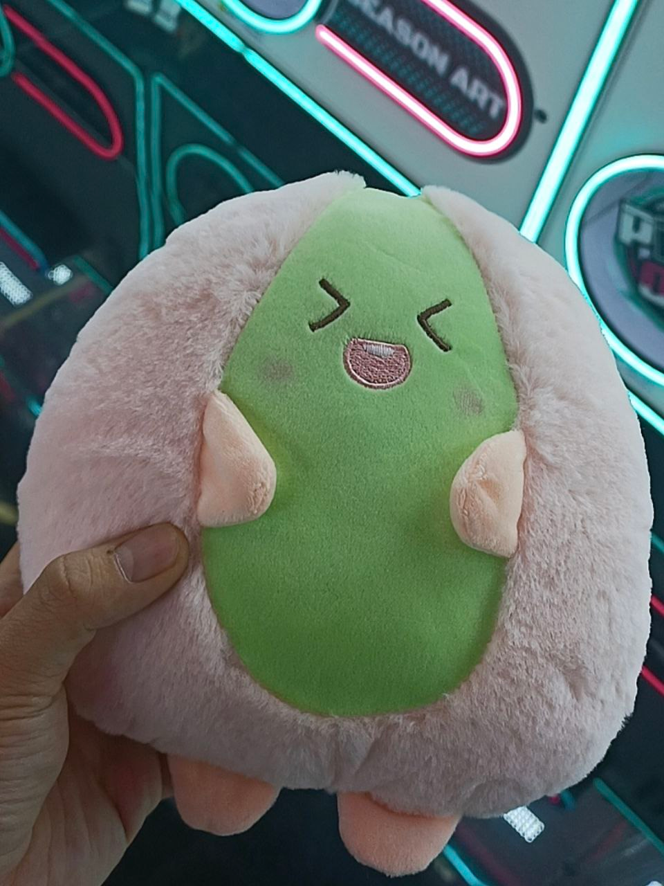 后来我们觉得干坐着有点无聊,就跑到隔壁的商场去玩,逛着逛着进了家电玩城,很幸运,一发入魂,钓了个娃娃回来。