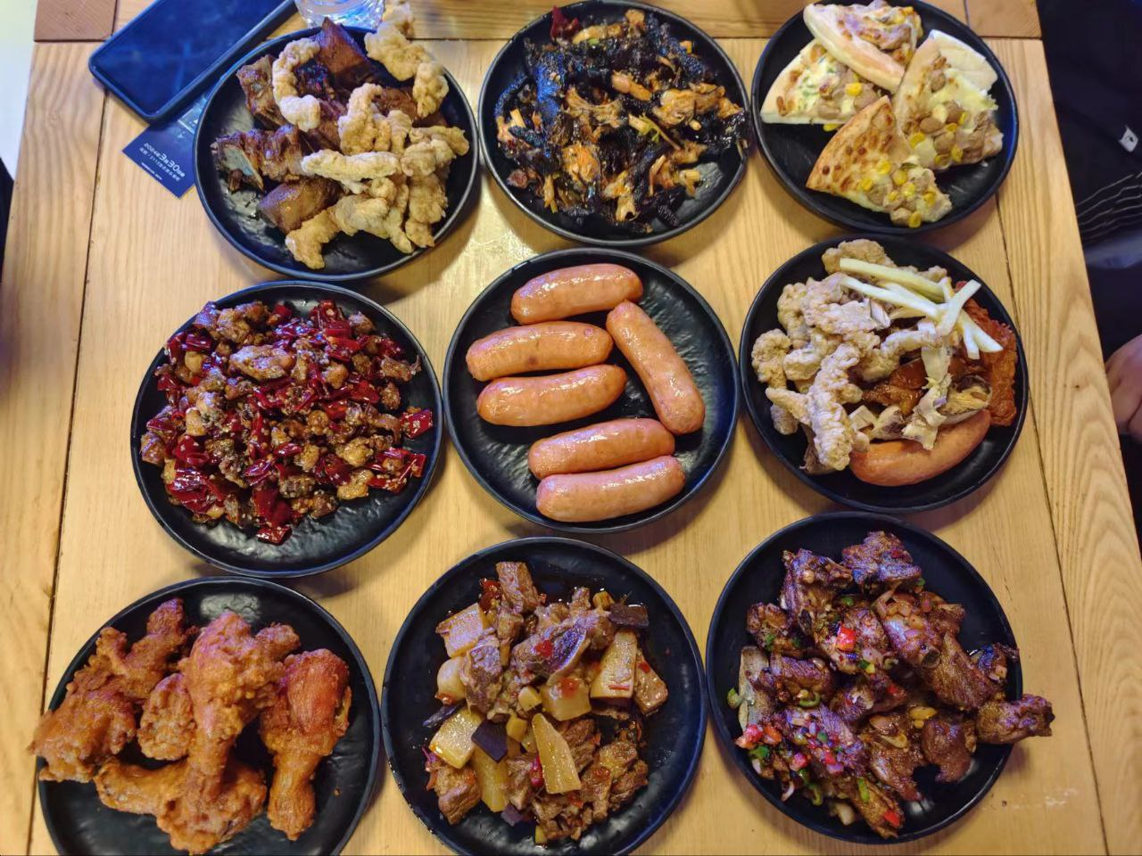 下午六点,运营小姐姐在群里说快开饭了,我们收到消息就马不停蹄地赶回了会场,抢在了入场第一位,等到开始入场,我们抢先占好位置,然后分工取餐,当别人还没找到位置时,我们已经摆满了一桌。