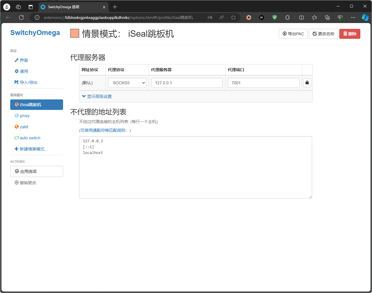 这样,只需要设置 Socks 5 代理服务器地址为 127.0.0.1:7001 ,就成功接入了内网环境!