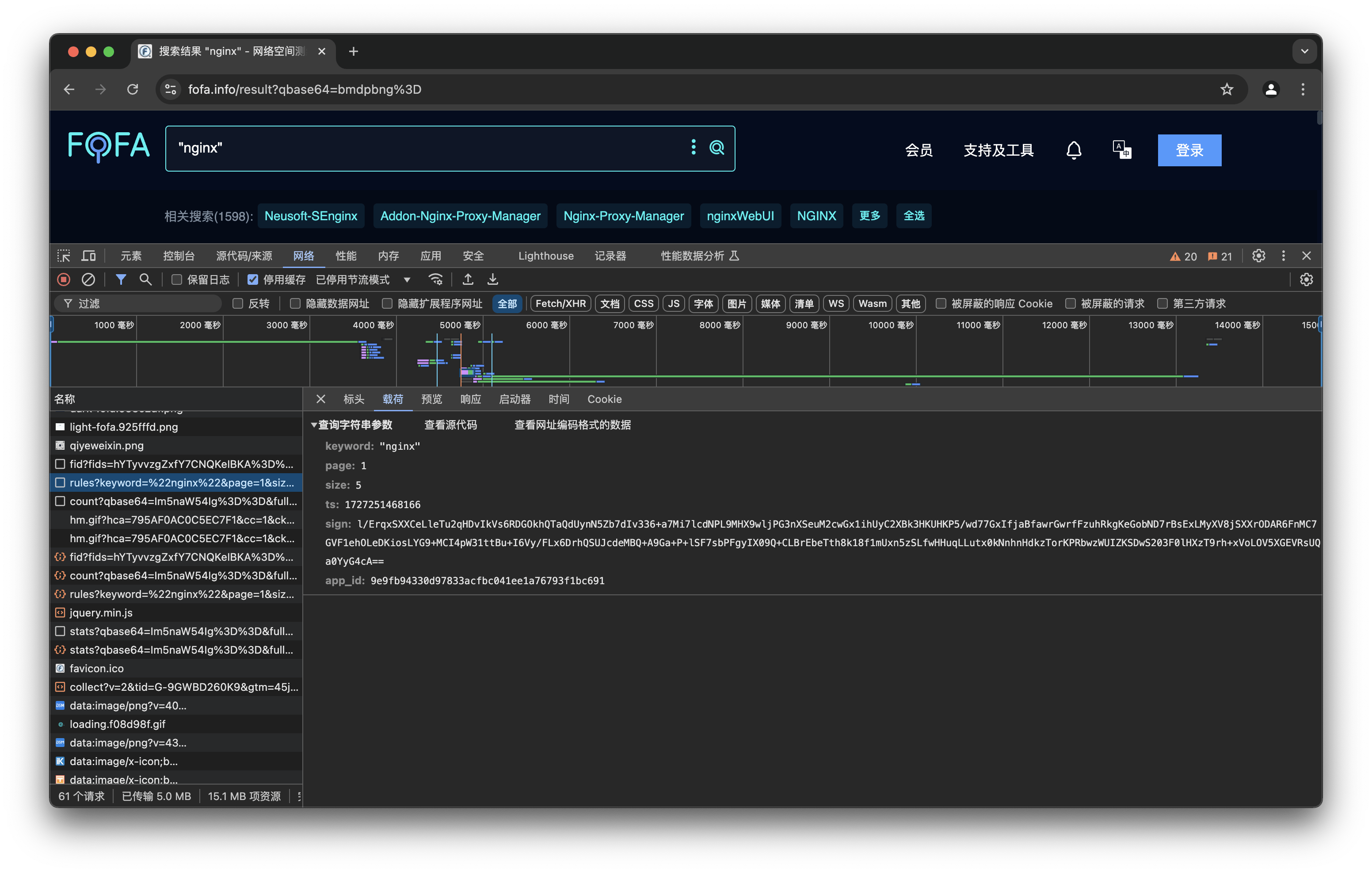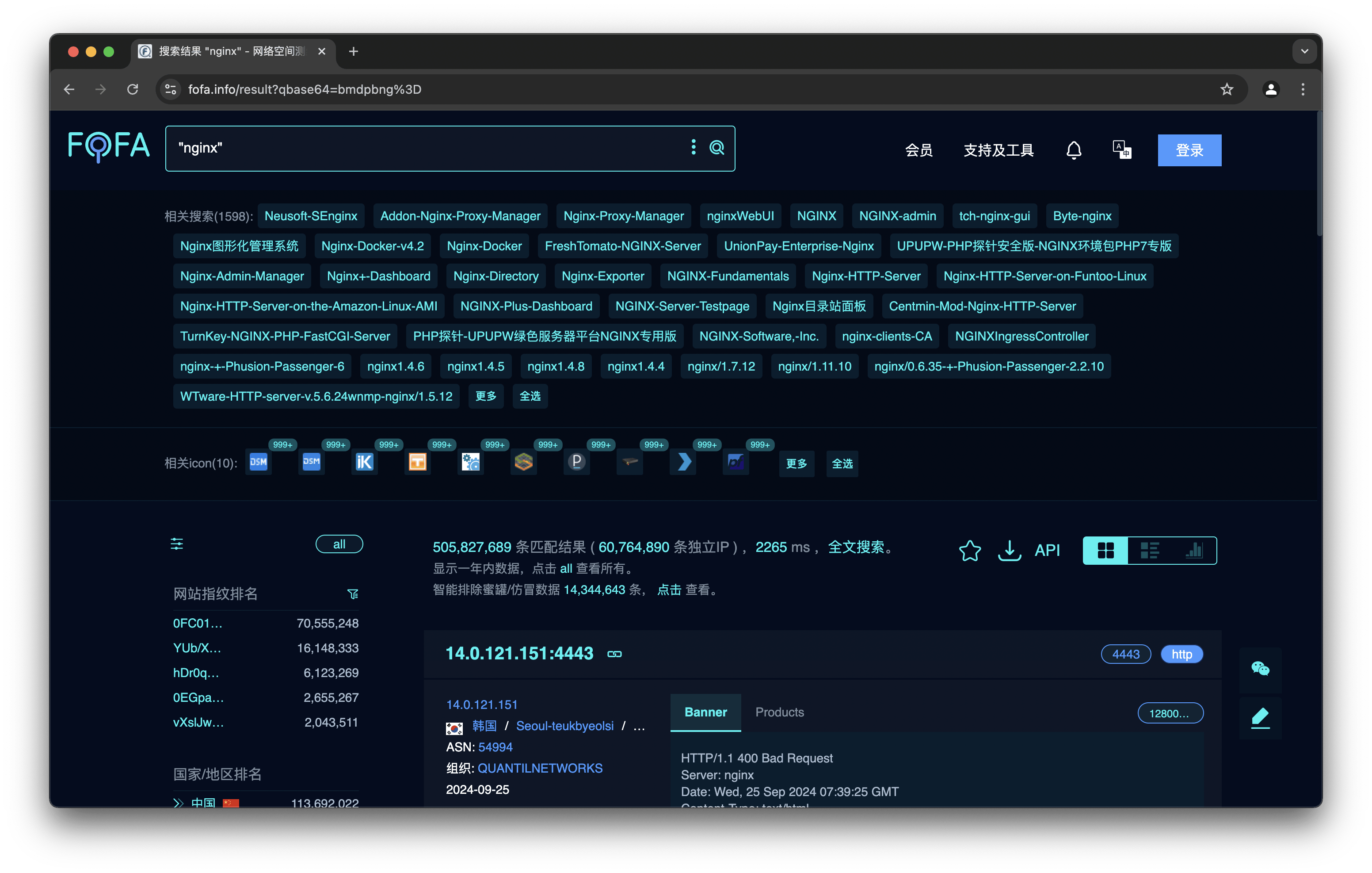今天遇到了一个需求,想要抓取 fofa 引擎 “相关搜索” 的数据: