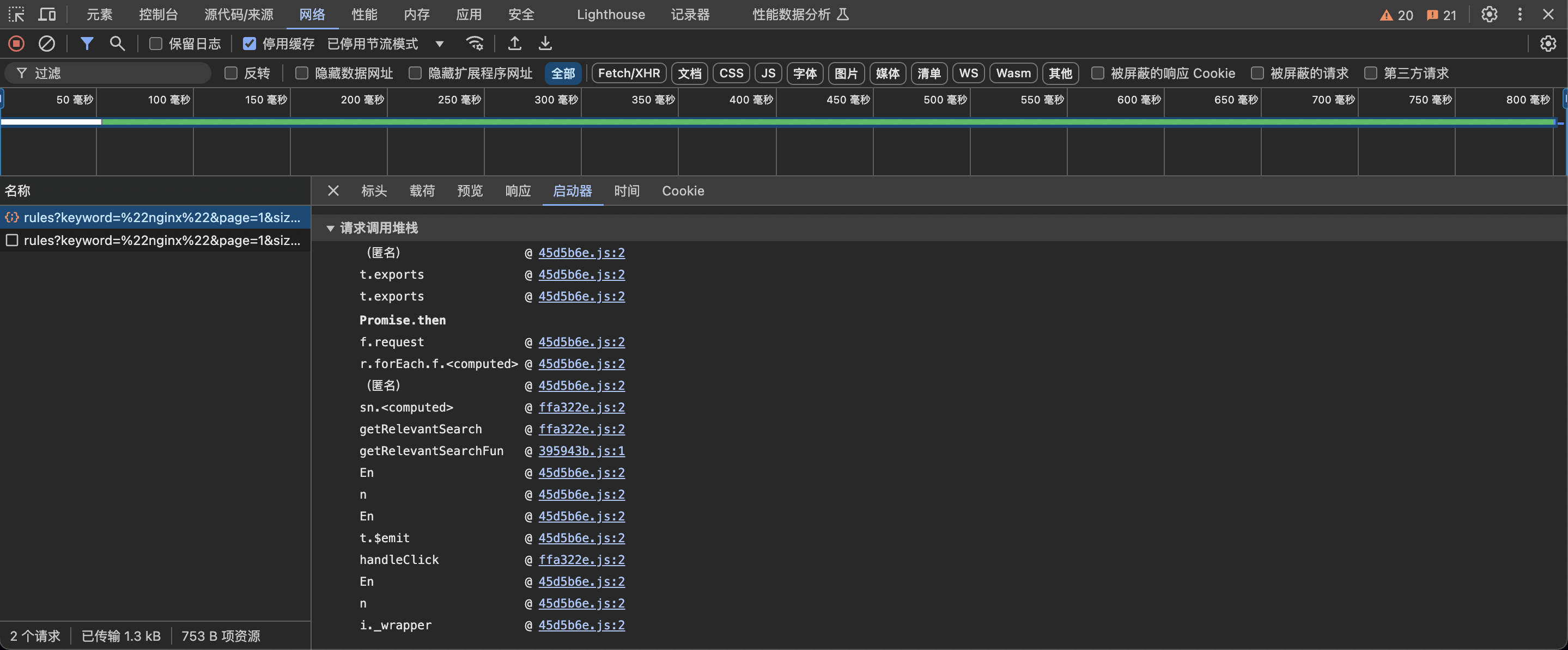 看了一下请求包,发现参数带有签名校验,无奈之下只能逆向分析 Js ,找到参数加密的方式: