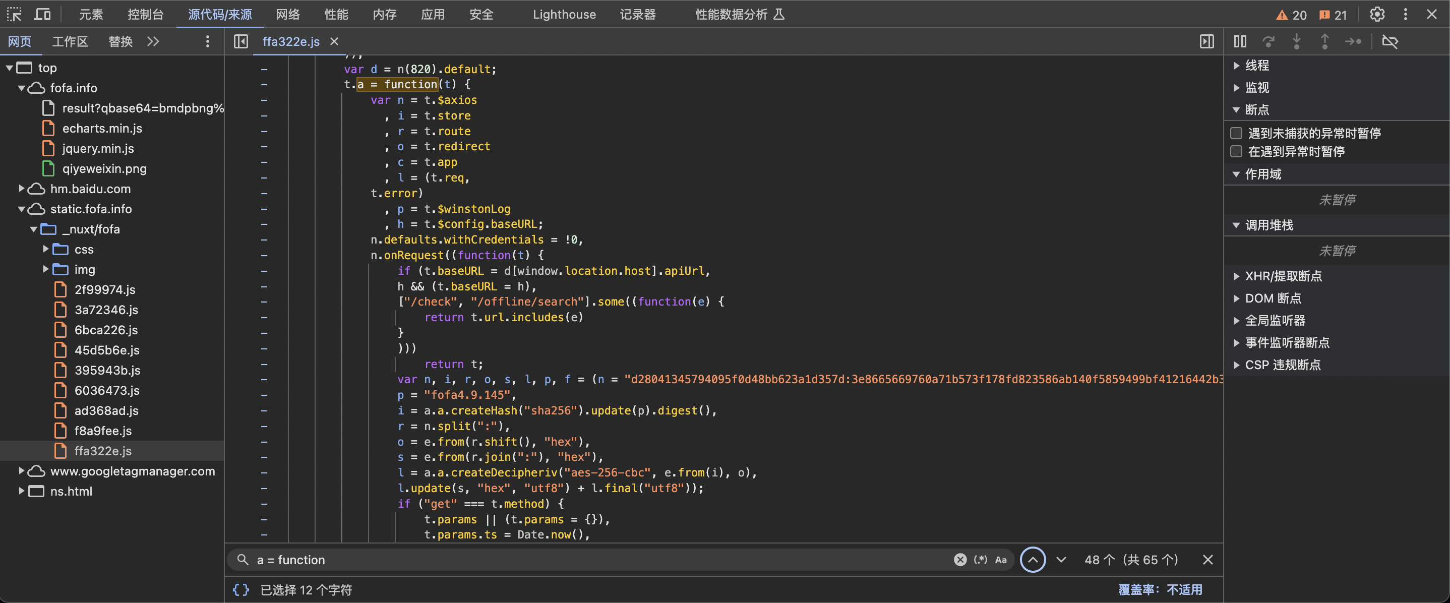 发现这里已经是执行请求了,但是注意到,这里使用的是对象 a 的 get 方法来实现的请求,应该是进行了自定义的功能实现,所以搜索对象 a ,找到封装的方法: