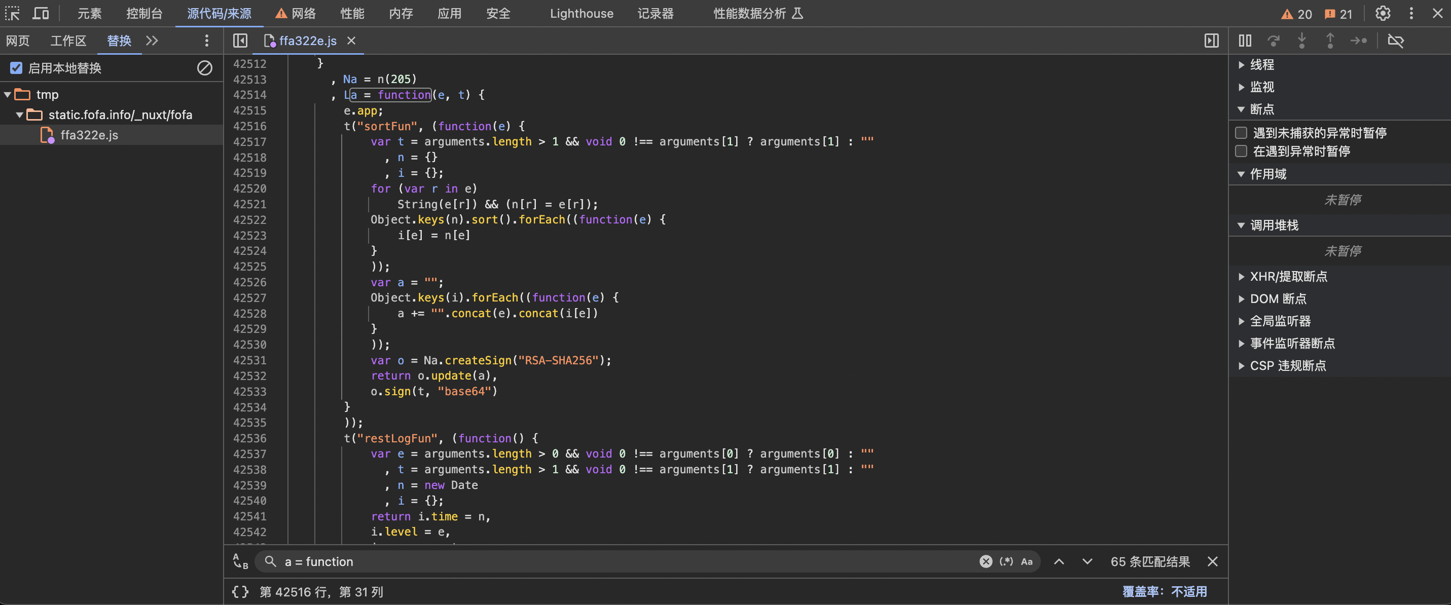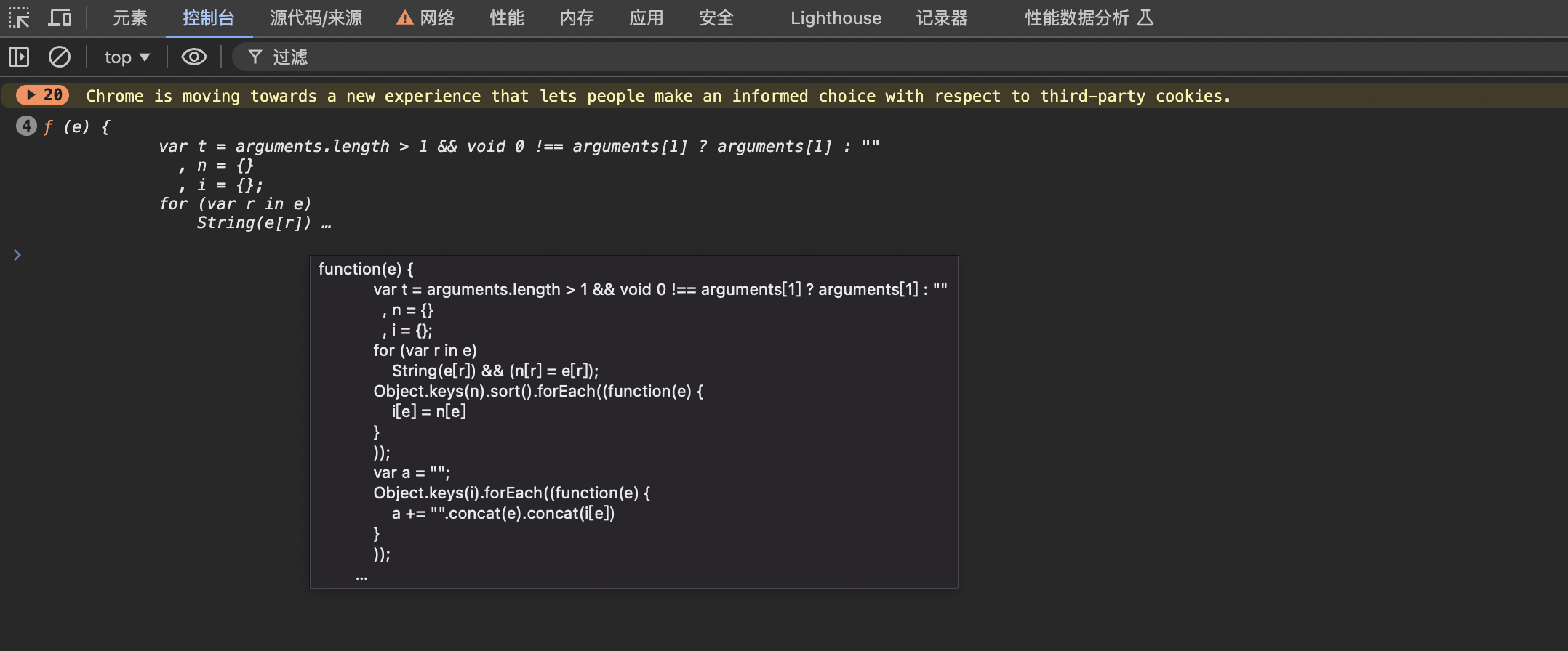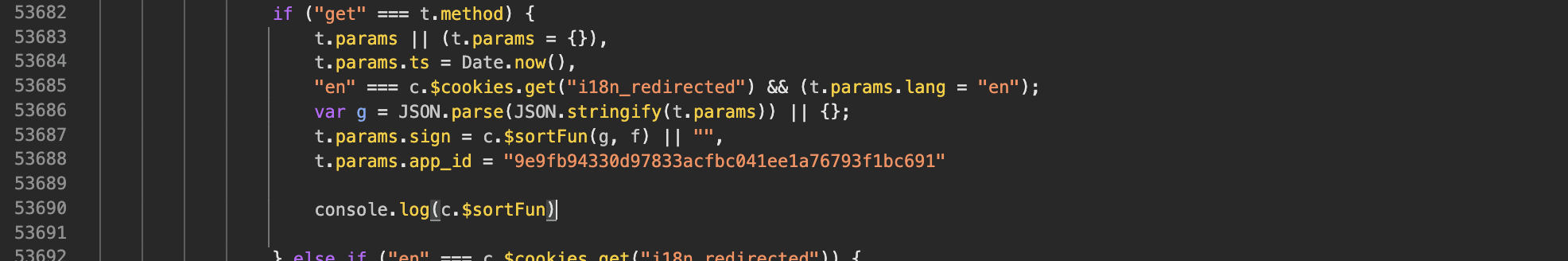 核心在于: t.params.sign = c.$sortFun(g, f) || "" ,在这里打印一下 c.$sortFun ,就能找到对应的函数是什么:
