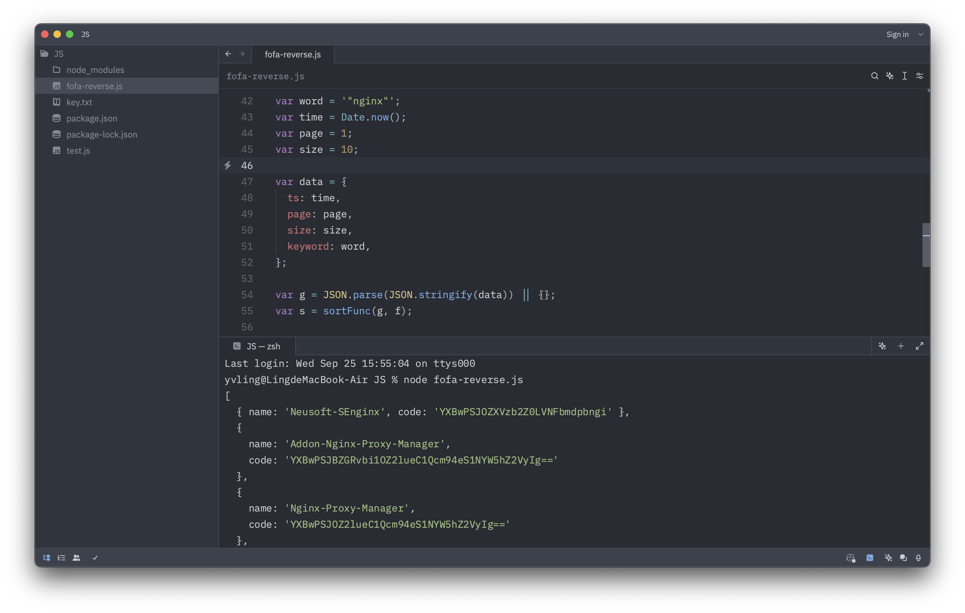 到这里之后,发现签名过程并不复杂,仅仅使用了 keyword, page, size, timestamp 进行 sha-256 加密,密钥也可以直接获取,那么就可以开始组装代码了。