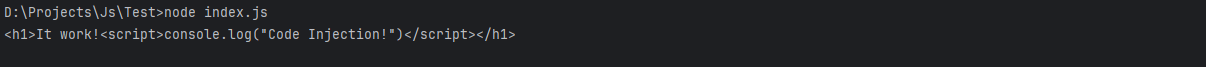 "val": "<script>console.log(\"Code Injection!\")</script>"