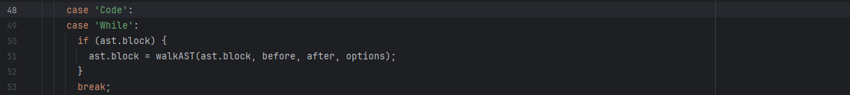 那么,但引擎解析执行到 if (ast. Block) 时,就会访问到 ast.__proto__. Block 即 Object. Prototype. Block ,这样恶意代码就被注入到了 AST 树中,可造成 XSS 或 RCE。