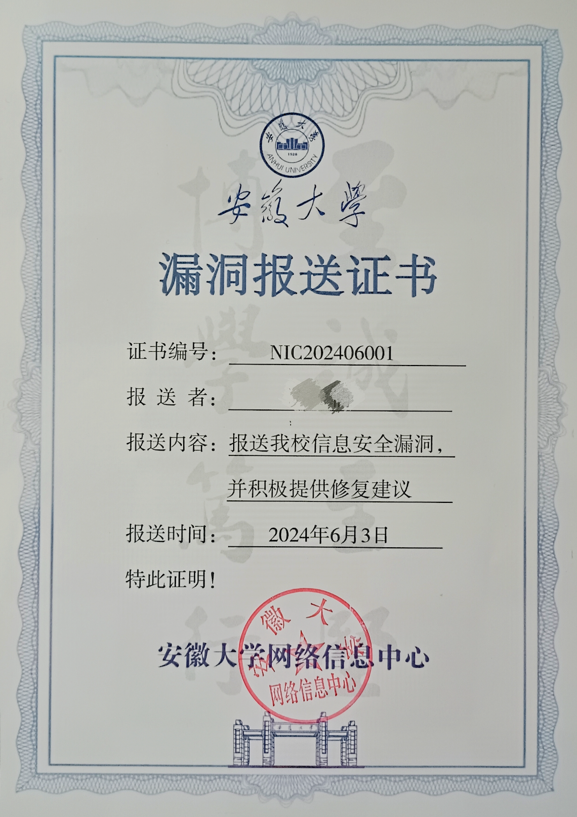 纪念一下全网唯一的漏洞报送证书吧: