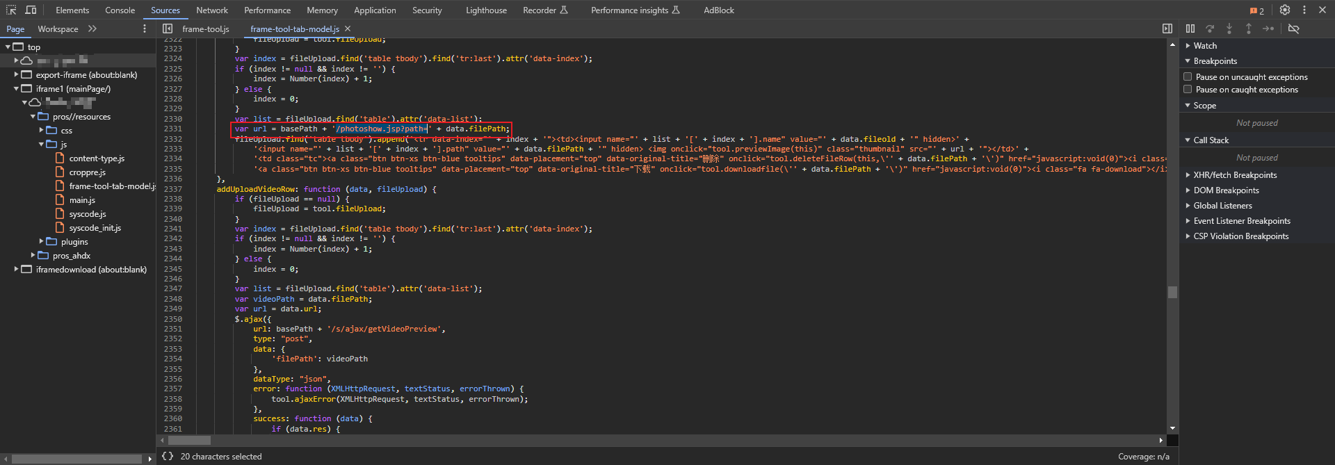 访问该功能系统,审计 js 代码,发现一处可疑 api 接口:/photoshow.jsp?path=