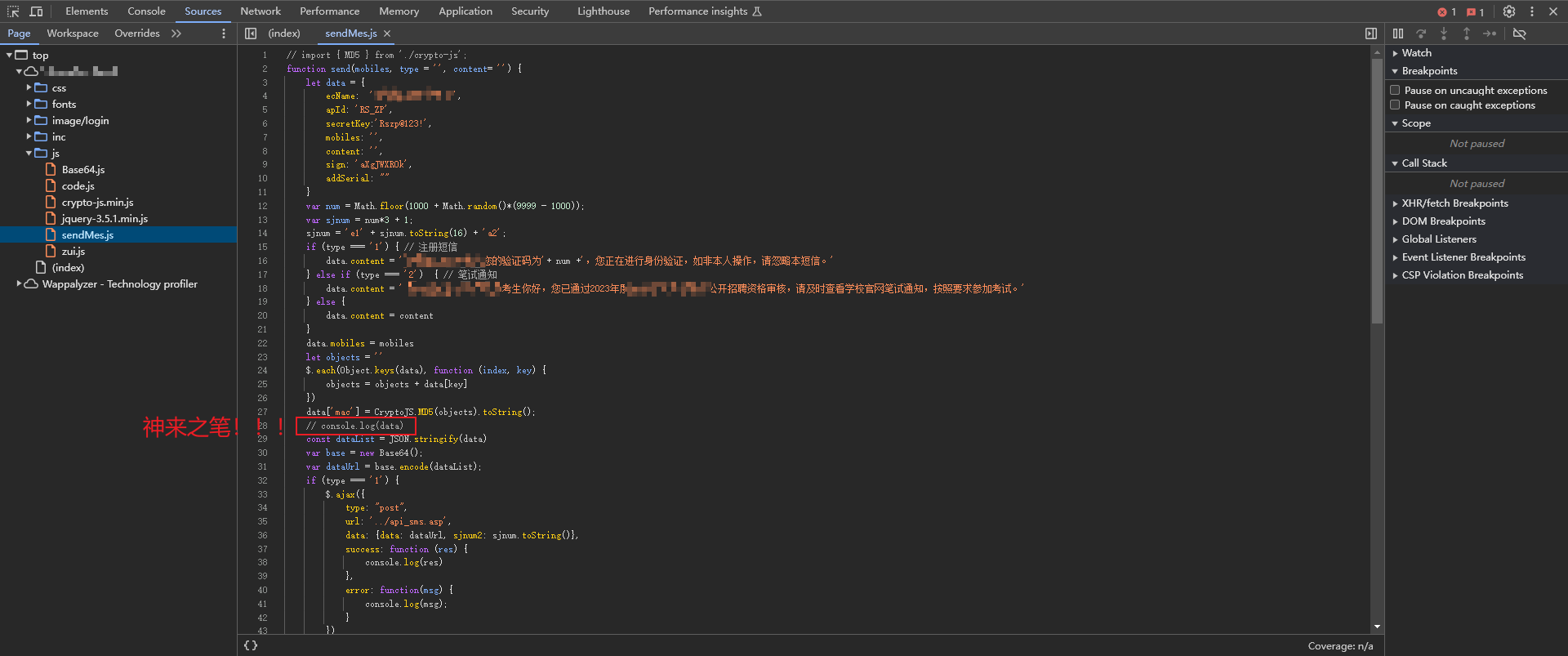 没啥好说的了,直接本地覆盖一下,解开注释,再次发送验证码,逻辑缺陷+1,逻辑狗的快乐谁懂!