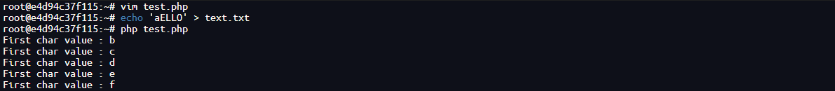 echo "First char value : ".file_get_contents($filter)[0]."\n";