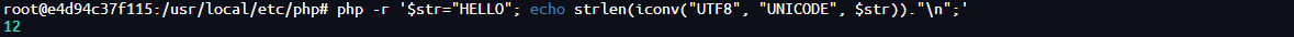php -r '$str="HELLO"; echo strlen(iconv("UTF8", "UNICODE", $str))."\n";'