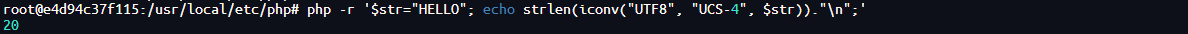 php -r '$str="HELLO"; echo strlen(iconv("UTF8", "UCS-4", $str))."\n";'