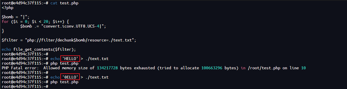 $filter = "php://filter/dechunk$bomb/resource=./text.txt";