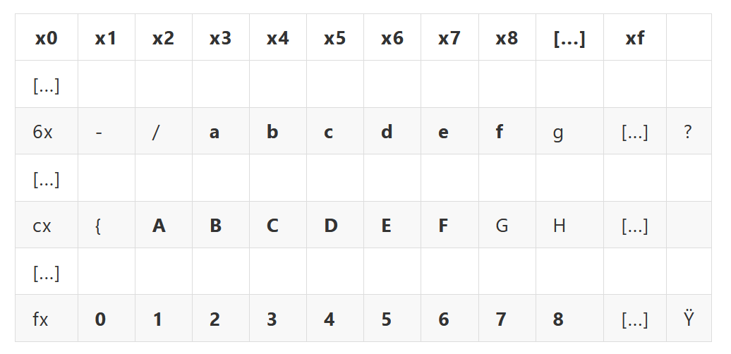 识别前向字符是在 a-f 还是在 A-F 中,使用的是 CP930 编解码器,其编解码表如下: