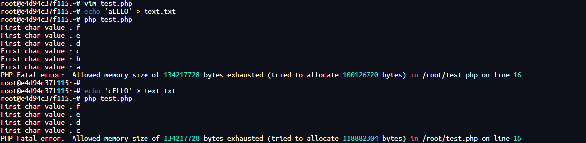 简单来说就是在过滤器中插入 20 次编码转换,当读入的前向字符(第一个字符)不是十六进制字符时,就会执行到链条上的 iconv 部分,导致溢出报错;否则在执行到 dechunk 部分时,就因为不符合格式约定而引发报错,输入到 iconv 的部分为空字符,不会引发溢出报错: