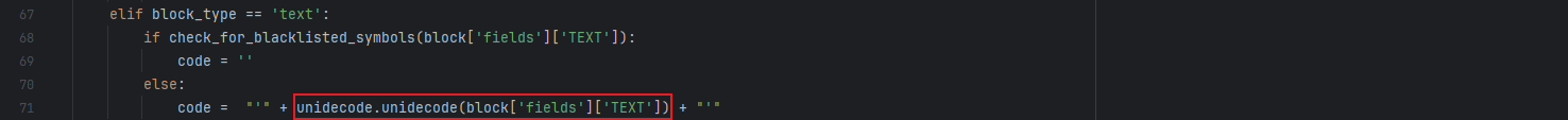 审计源代码,发现在正则过滤,但是还使用了 unidecode.unidecode() 来对传入的文本进行转码,所以可以通过全角字符来进行绕过: