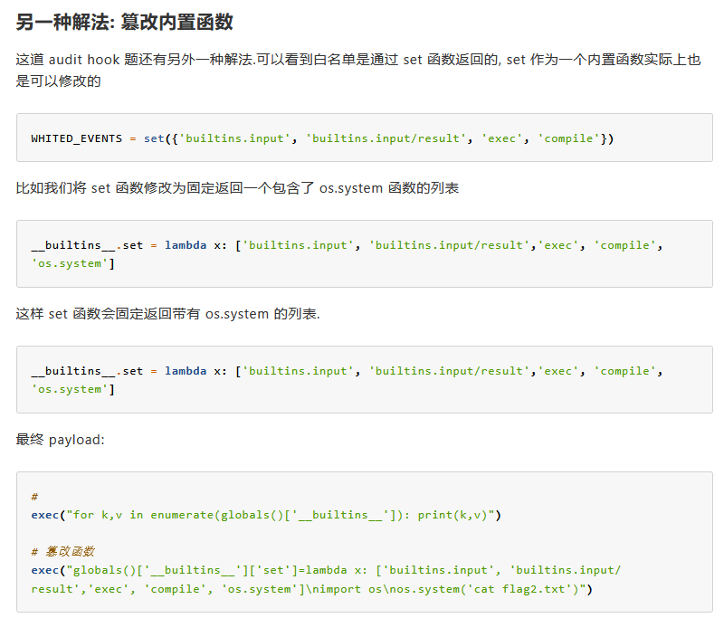 为了绕过这个限制,根据 CTF Pyjail 沙箱逃逸绕过合集 提到的:
